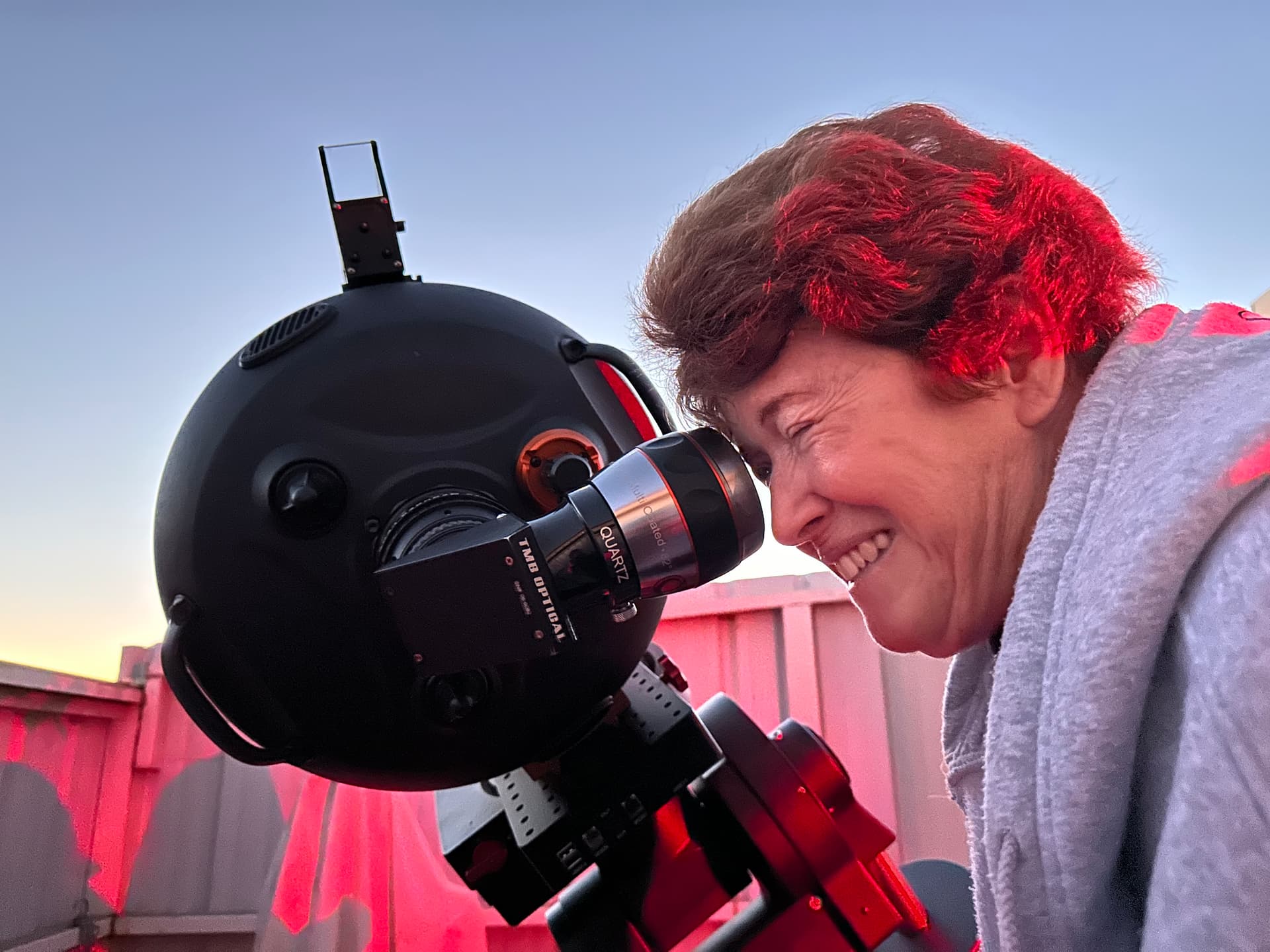 Next we could clearly make out Uranus and Neptune as tiny discs. The air was crystal clear with almost no shimmering. As the evening progressed, new member Ella and her son arrived. We looked at clusters like M41, and then M42. The gaseous nebula glowed brightly in the almost perfectly dark sky. We looked at Alcor/Mirak double, and returned to Jupiter pushing up the power with the 10mm eyepiece. We also looked at the moon’s terminator and got an upclose look at several craters Everyone was pleased with the show!