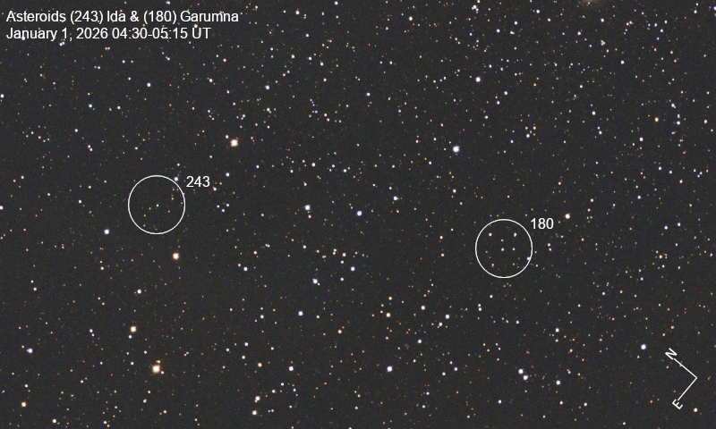 I captured main belt asteroids (243) Ida and (180) Garumna together in the same patch of sky on January 1st from my backyard in Edmond using my Celestron Origin.