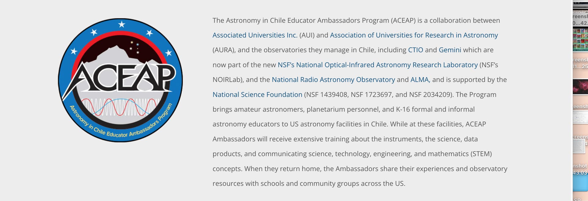 Here is the link: Applying | ACEAP Astronomy in Chile Educator Ambassadors Program