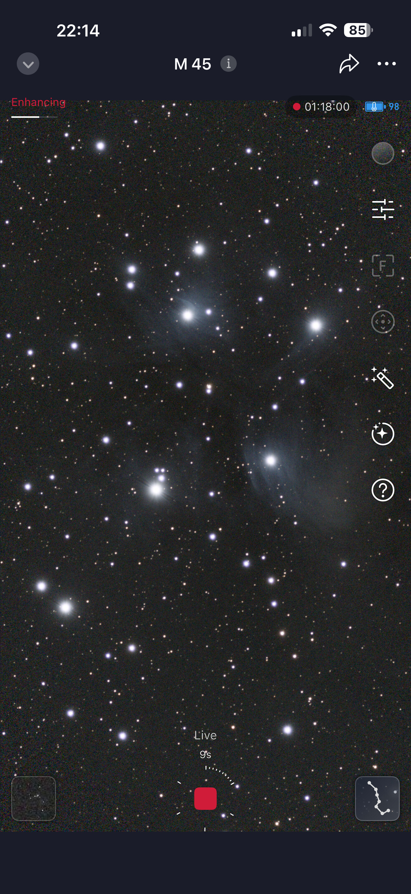 I love the Seestar lineup. I have the S50 Imaging M45 mosaic on Station mode right now as I am warm and comfy inside. EQ mode, 10-second subs, Stacked 461, Ignored 2.