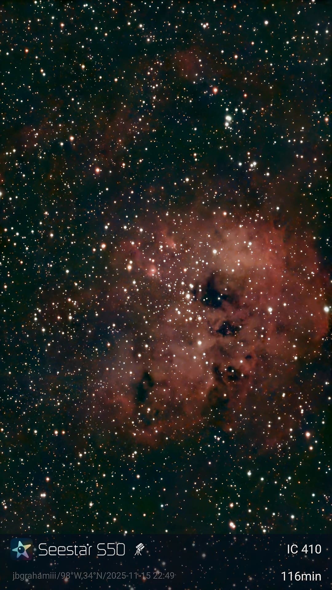 EQ mode, 20 sec, Bortle 6, Seastar S50, processed and stacked in the Seestar app.