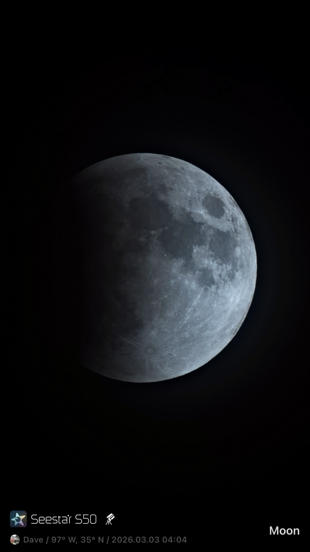 You might be able to see some of the first part of the eclipse, so if you’re up, be sure to stick your head out the door and take a gander! We might be able to see some of it visually, but not worth trying to image it, imo.